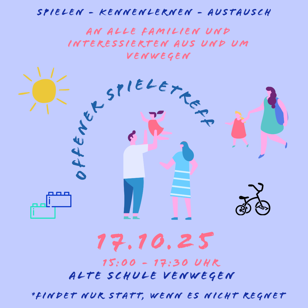 Eine Terminübersicht zu Veranstaltungen für Kinder- und Jugendliche und Familien in Venwegen gibt es unter Termine.